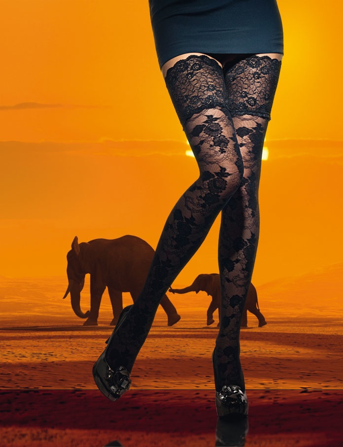 Состав: 85% полиамид, 15% эластан. Фантазийные самодержащиеся чулки с